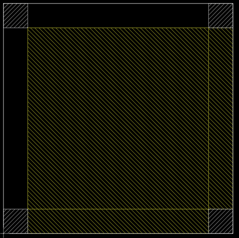 Vediamo ora cosa succedere con una bass trap realizzata con pezzi da 30cm X 30cm di isolante disposti uno sopra l’altro fino ad arrivare all’altezza desiderata, e sostenuta lateralmente diciamo dai soliti listelli 4cm x 4cm; in questo modo, come scritto sopra, nei due lati che guardano il muro possiamo lasciare un’intercapedine d’aria di pari spessore e sui due lati verso l’ambiente possiamo sfruttare ulteriori 4cm da riempire, arrivando così ad una profondità totale di 34cm. Una cosa del genere vista in sezione, dall’alto
