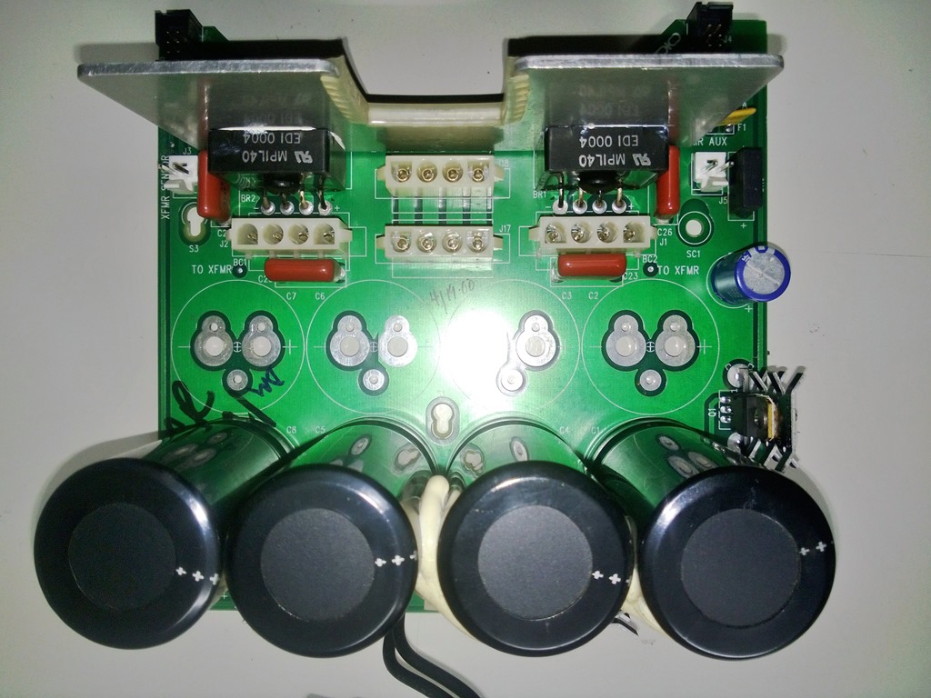 the holes on the supply board, so that now the total capacitance is 120000uF instead of 60000uF.