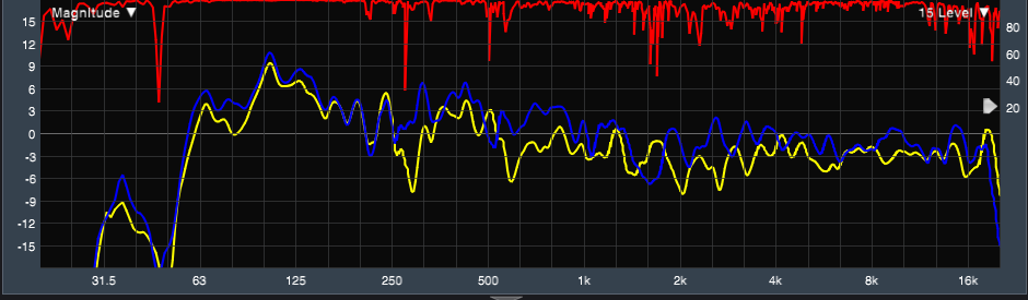 A questo punto vado a ricontrollare i dati di Smmart e vedo che la misura ha riportato 5,52ms di ritardo per la cassa con il 15” e 5,44ms per quella con il 12”; 0,08ms di differenza, praticamente 2,75cm, come se il diffusore da 15” fosse arretrato di quella distanza rispetto a quella da 12”.